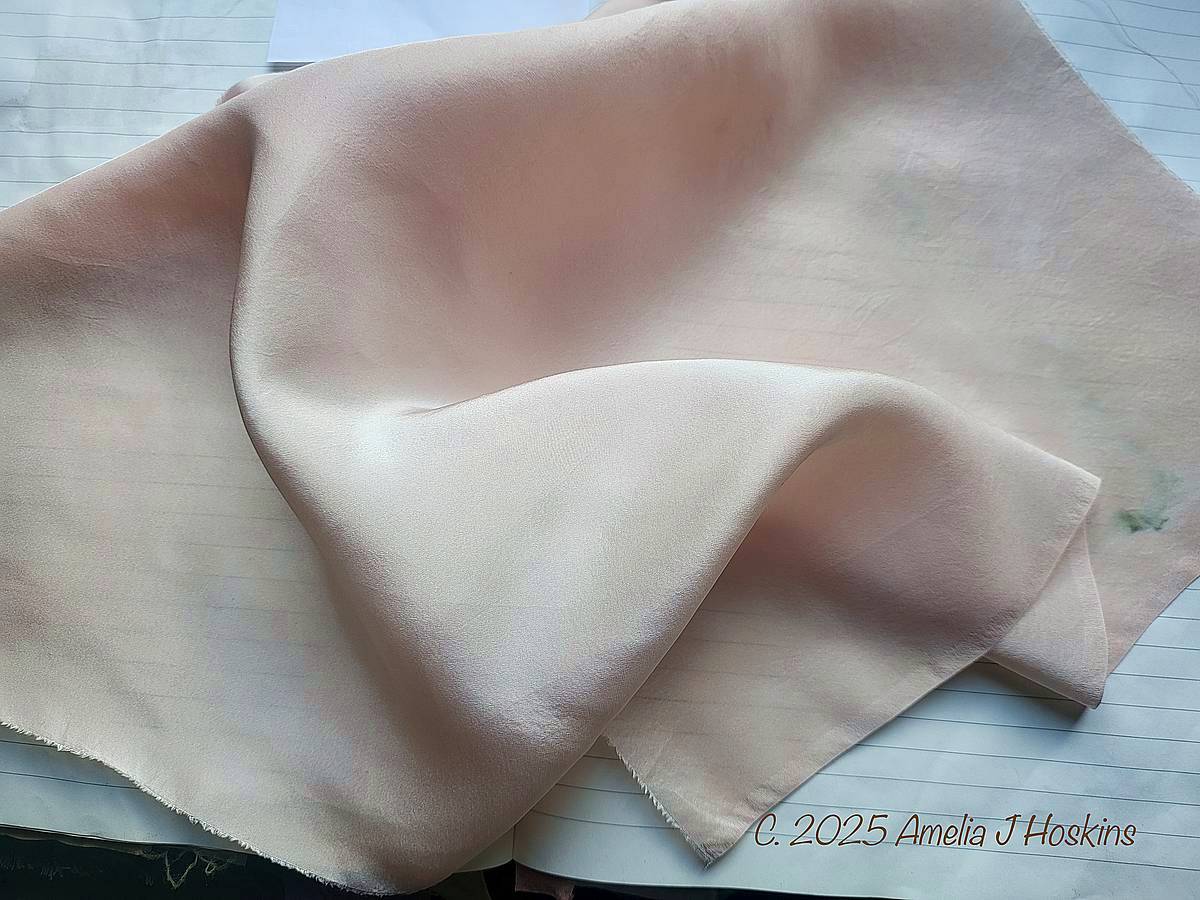Testing apple skin dye effects when silk is scrunched up beneath a small pot of skins. Aiming for a marbled appearance.