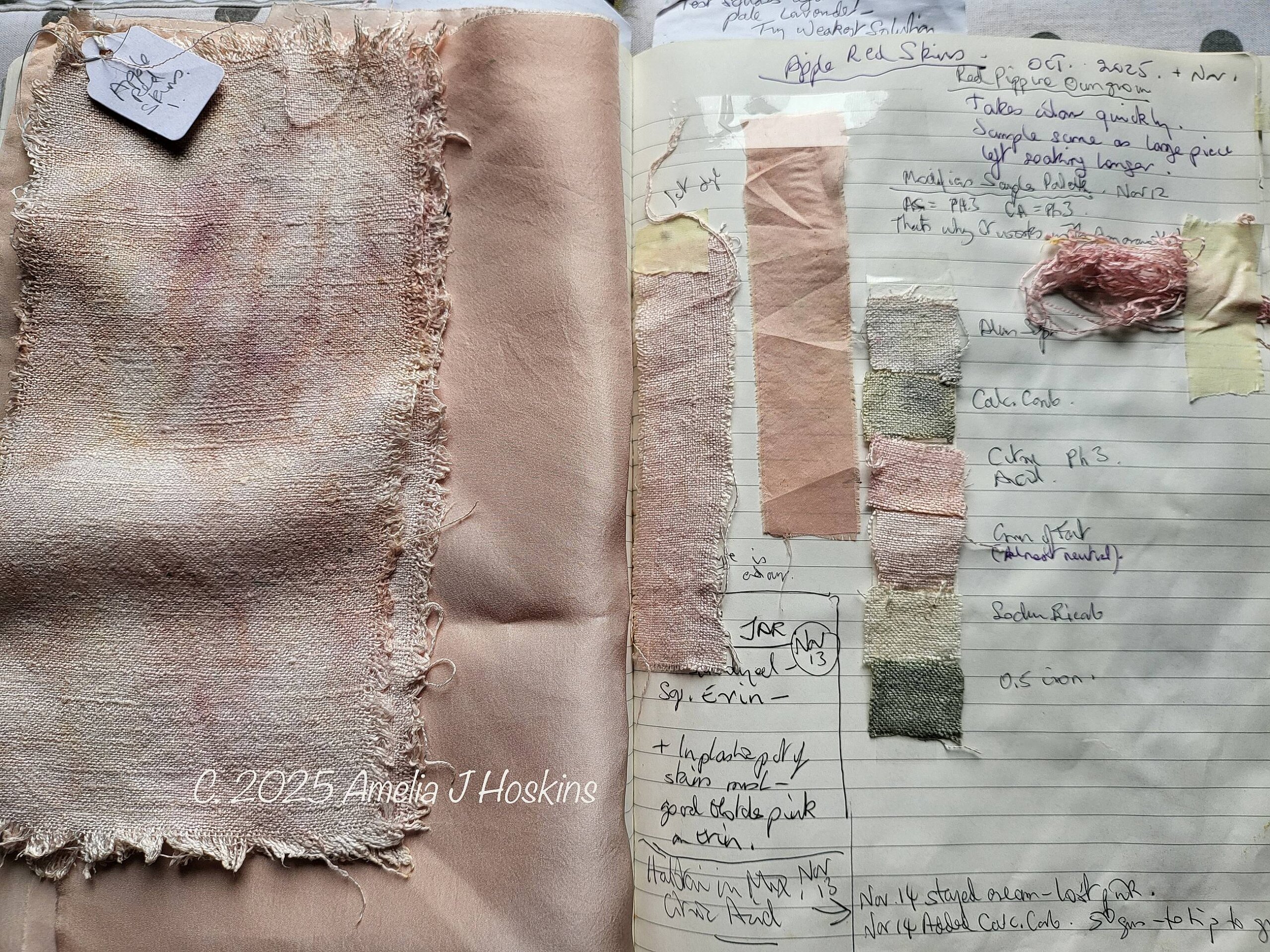 Blackberry dye is stored to be re-tested with iron for lavender to violet and citric acid for brighter pink. TO CONTINUE...