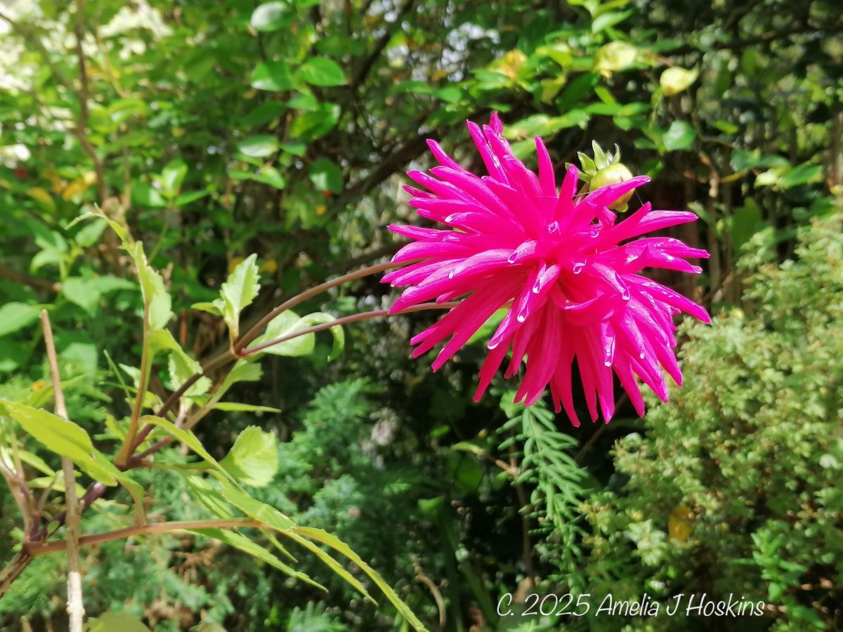 I thought dahlias would give pink, but NO, golden yellow.  The centre yellow gives a strong yellow dye.  Petals are soaked firstly for days, then heated gently, before adding silk.