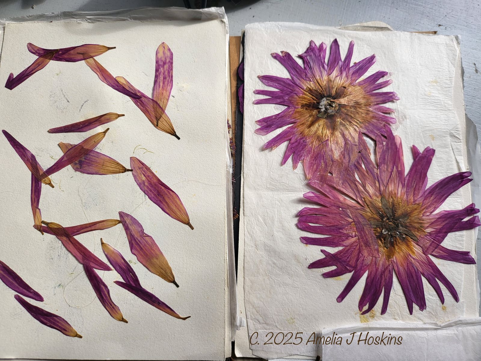Dahlias being press dried