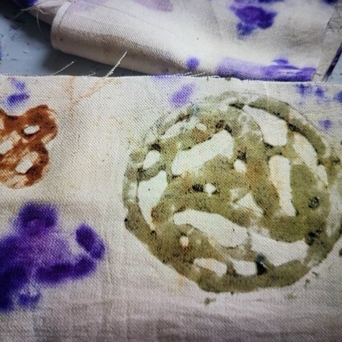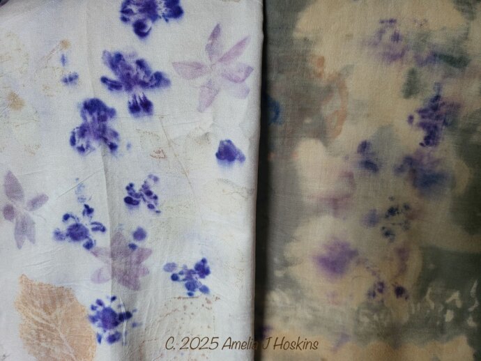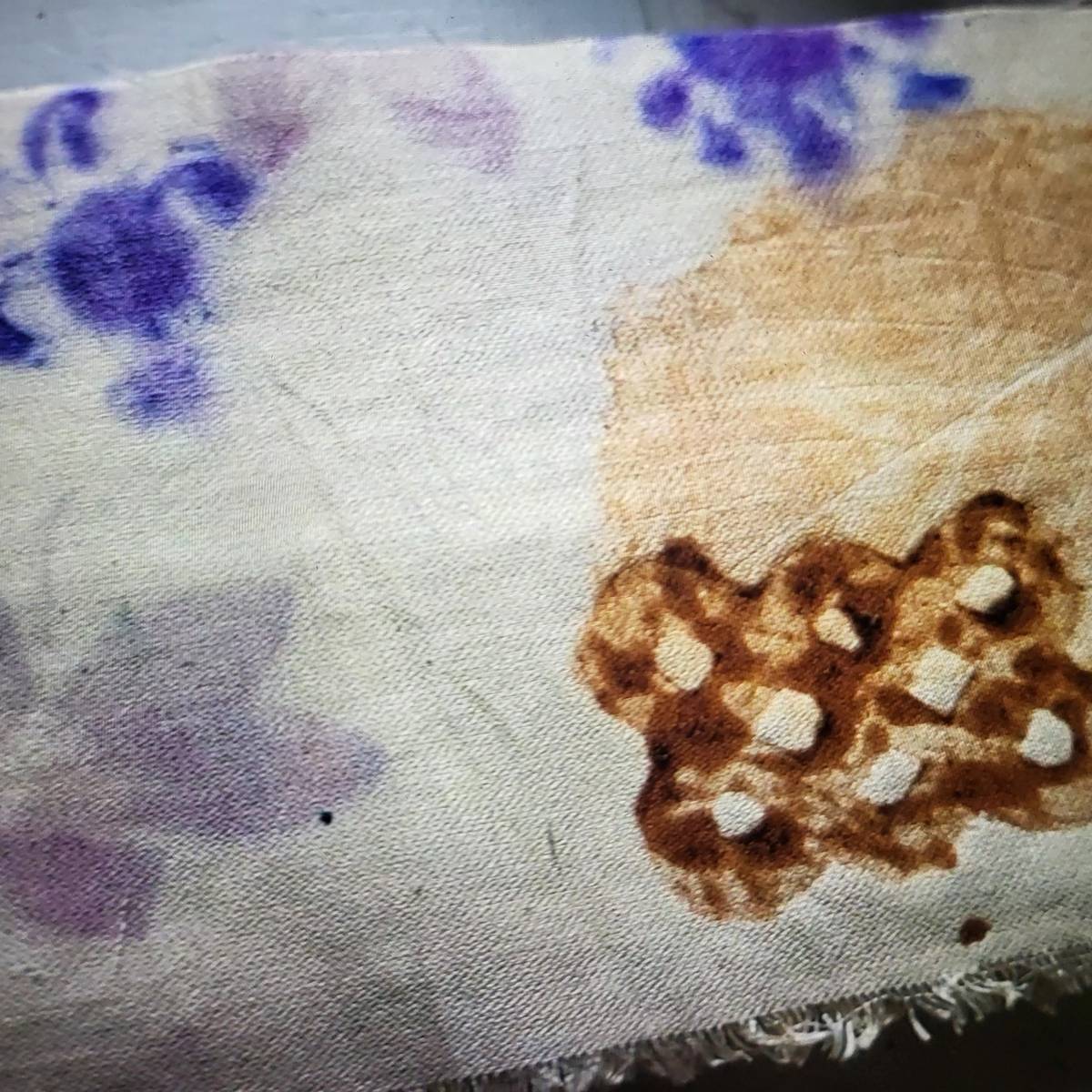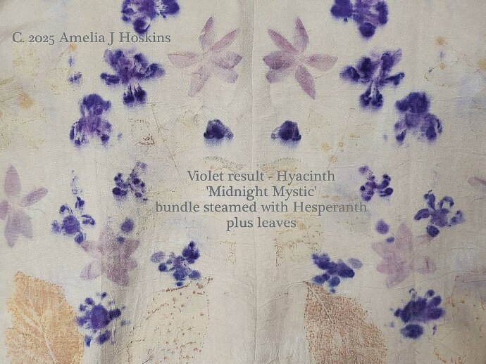 • Ahimsa bundle dyed with Hesperanth and hyacinth plus few Coleus leaves, dyed together with the wool scarf.