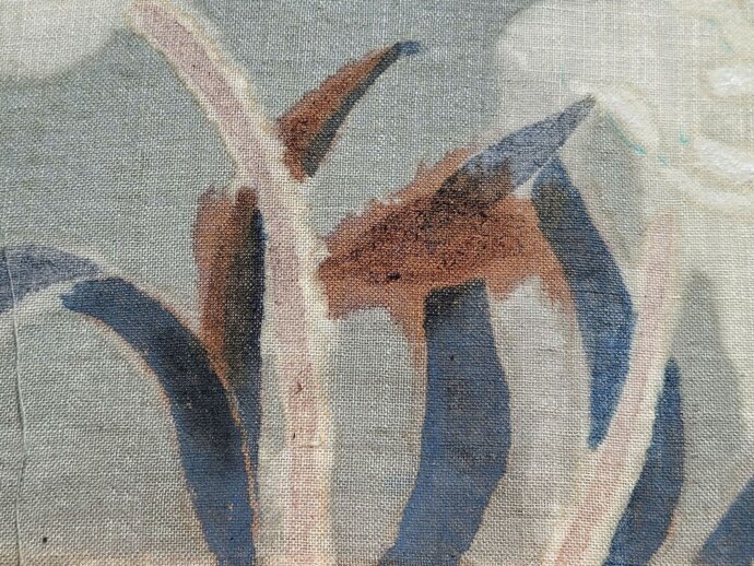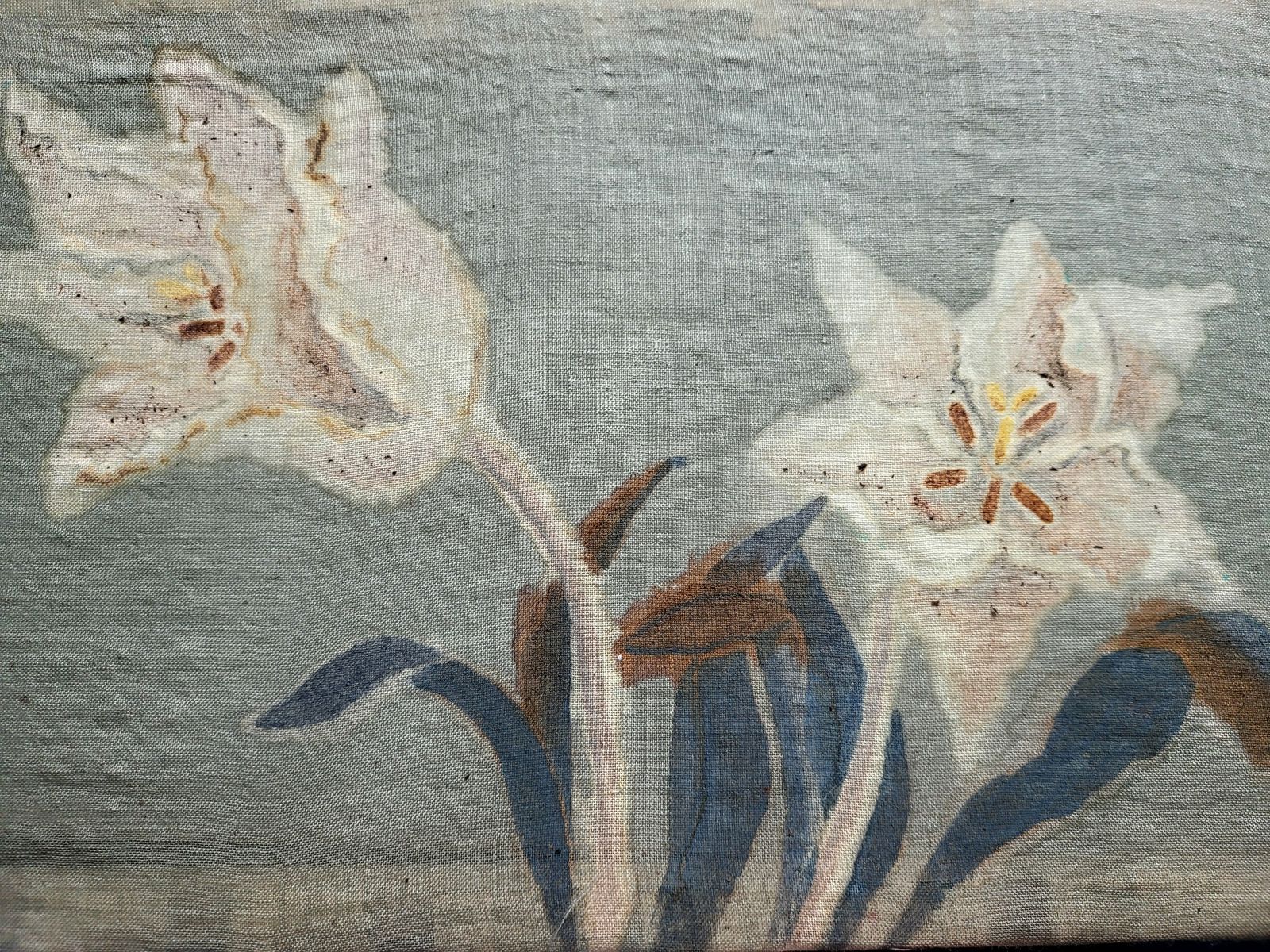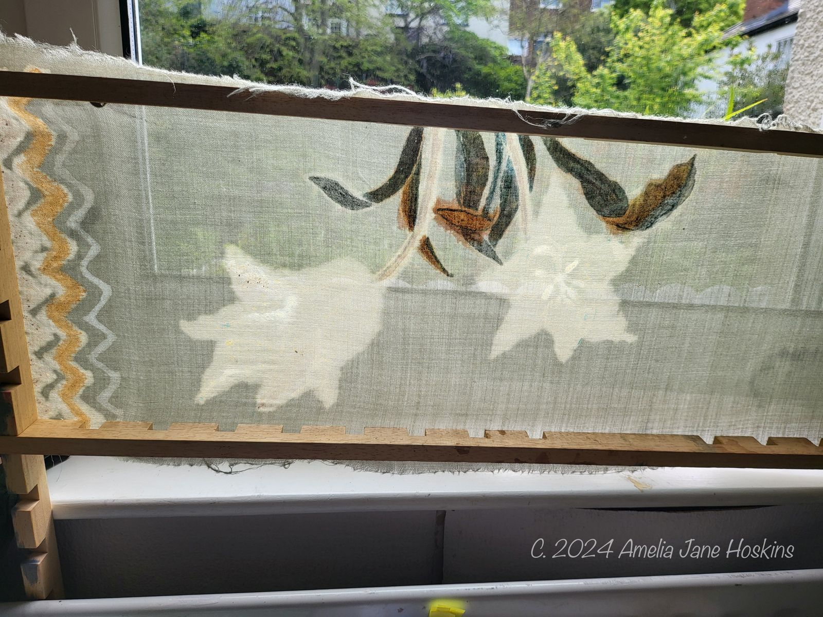 • Tulips made by lemon bleaching the dyed wool (this may have caused the blurring  and browning after steaming)