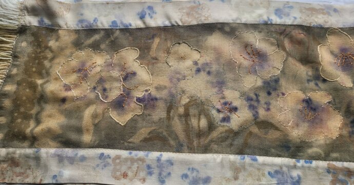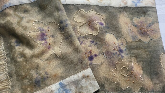 • 2025 decision to add natural dyed fringe and embroider outlines where flowers are suggested.