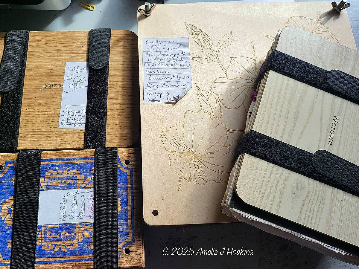 When flowers are flat and completely dried, (about a month at least), they can be slid into a plastic wallet and saved in a large folder for easy access for eco printing, or decorative craft.  I also have some dried flowers in the wallet which were never pressed last year. They wont be 'flat' for eco printing but can be used for normal immersion dye bath.